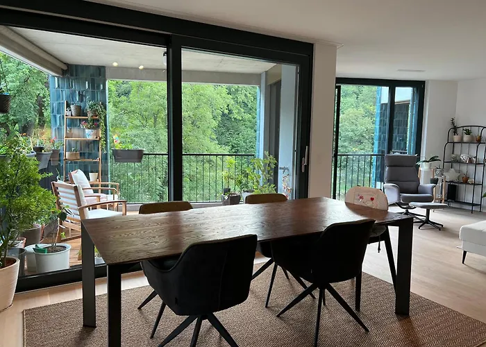 Overlooking the river, the 100 m² Luxury 2Br, 2 Bath, Spacious Living Room With Open Kitchen, River View, Ideal For Long Stays, Parking, 10 Min To Center Zurich is about 25 minutes' walk from the Museum Rietberg in Zurich. This 2-bedroom apartment is situated approximately 6 km from Zürich Hauptbahnhof train station and only steps away from Manegg bus station.